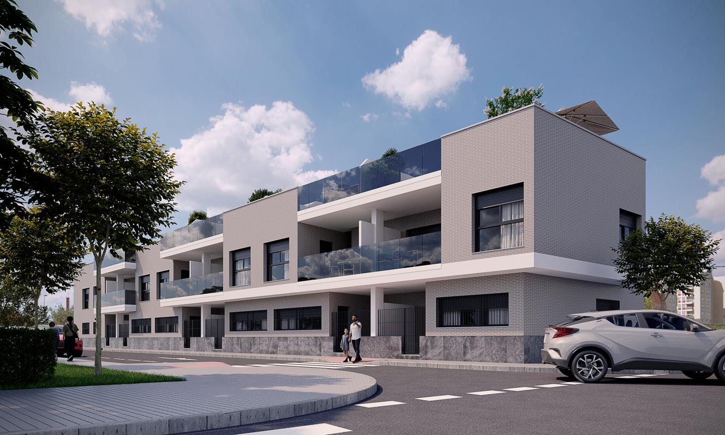 Edificio de 13 viviendas, plazas de garaje, trasteros y piscina comunitaria.
